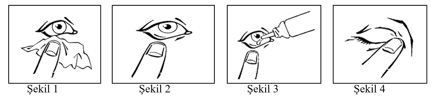 - Damlayı dikkatlice konjunktival kesenin ortasına damlatınız (Şekil 3). Damlalığın gözünüzle temas etmemesine dikkat ediniz.